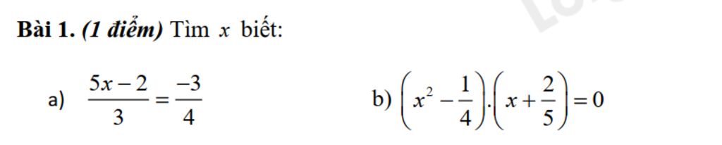 `b)` `(x^2 - 1/4) . (x+2/5)=0`