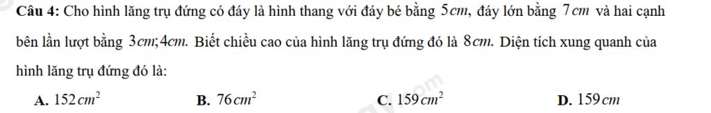 Diện tích xung quanh của hình lăng trụ đứng đó là: