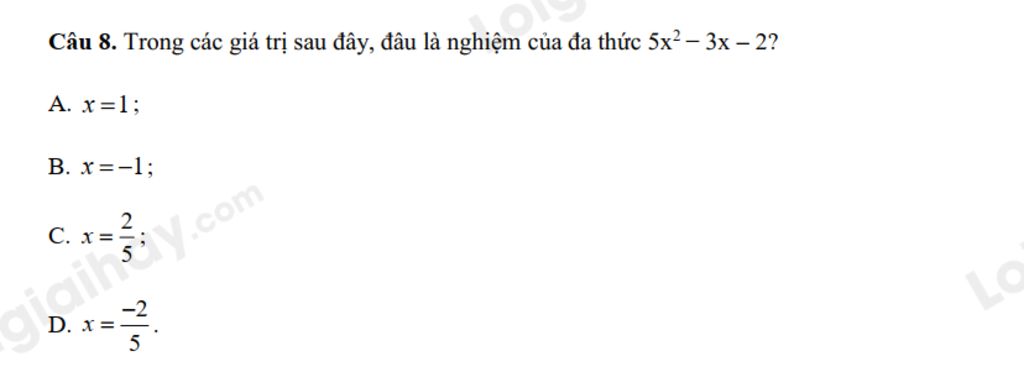 Tại `x=1` thì `5x^2-3x-2=5.1^2 - 3.1 -2=0`