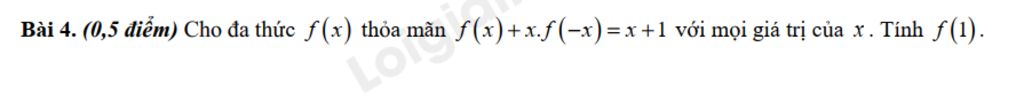 Mà f(1) + f(-1) = 2 nên 2f(1) = 2 do đó f(1) = 1.
