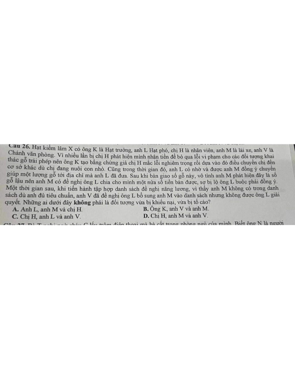 `+` Anh V là chánh văn phòng đề nghị bổ sung anh M vào danh sách nâng lương nhưng không giải quyết, anh V không thể khiếu nại, tố cáo.