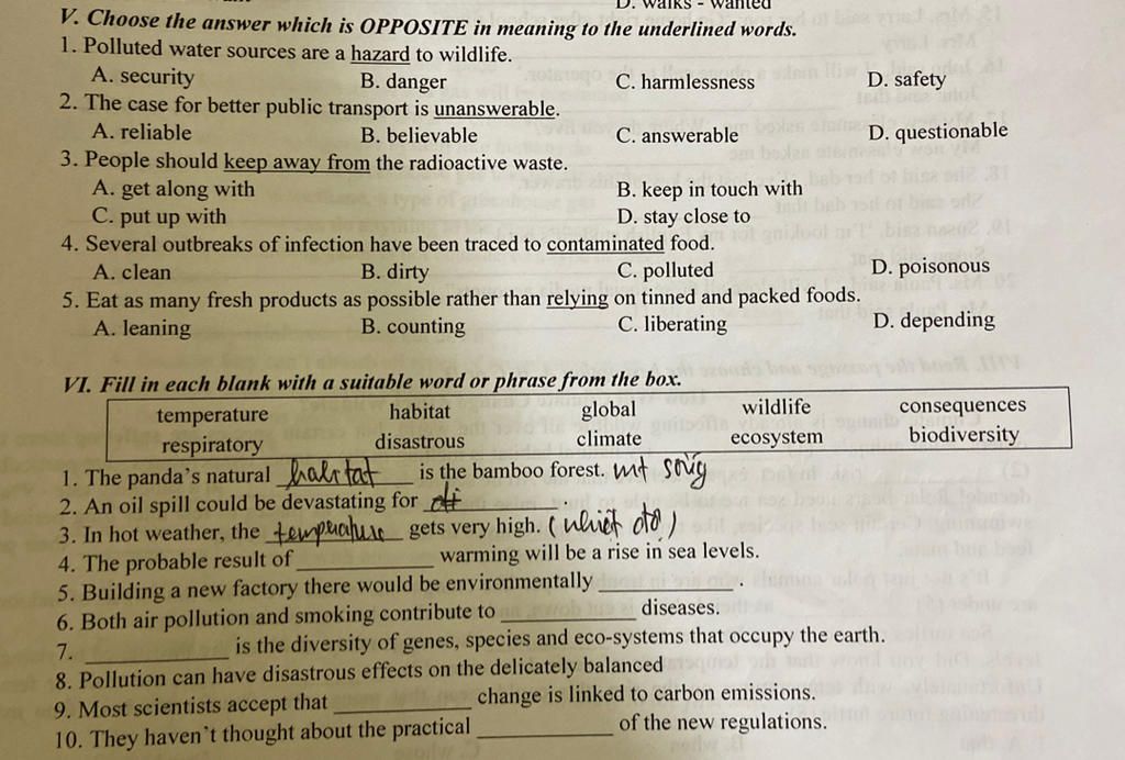 V. Choose the answer which is OPPOSITE in meaning to the underlined words.