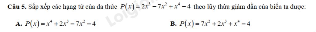 Sắp xếp `P(x)` theo lũy thừa giảm dần của biến ta được: