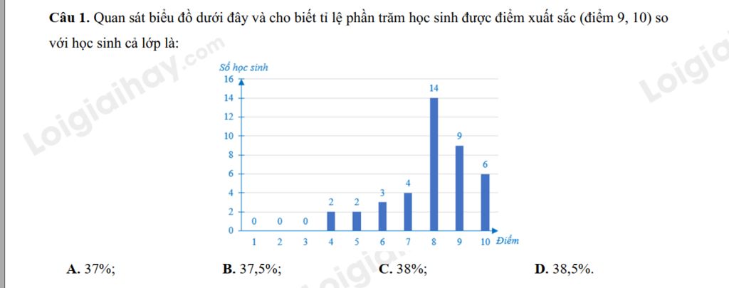 Tỉ lệ phần trăm học sinh được điểm xuất sắc (điểm 9, 10) so với học sinh cả lớp là: