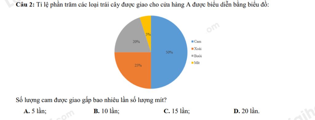 `+` Số lượng cam chiếm `50%` các loại trái cây