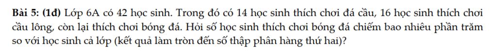 Số học sinh thích chơi bóng đá chiếm số phần trăm so với học sinh cả lớp là: