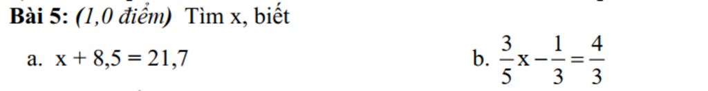 a) `x` $\text{+ 8,5 = 21,7}$