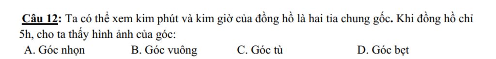 Coi kim giờ chỉ số `12` là cạnh là kim phút là cạnh còn lại chỉ số `6`