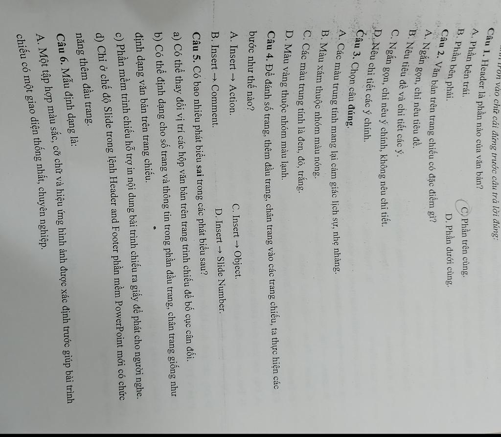 on vào chữ cái đứng trước câu trả lời đúng: