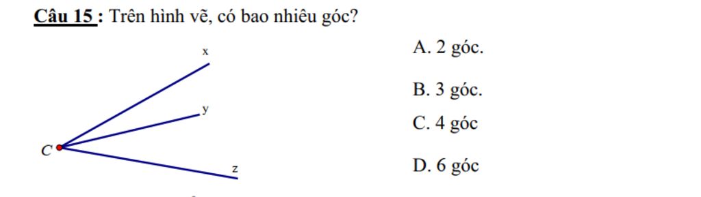 `@` Có các góc sau: `hat(xCy), hat(yCz), hat(xCz)`