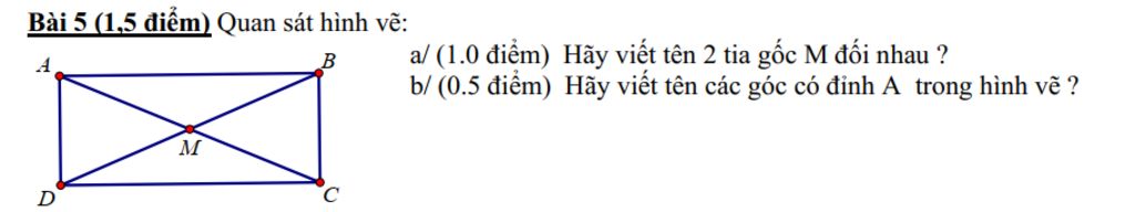 `b)` Các góc đỉnh `A` là:`\hat{DAM};\hat{BAM};\hat{BAD}`
