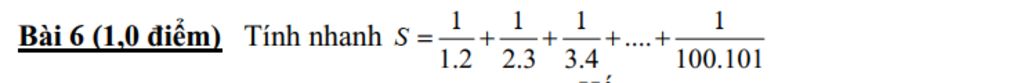 $\text{ S = $\frac{1}{1.2}$ + $\frac{1}{2.3}$ + $\frac{1}{3.4}$ + ... + $\frac{1}{100.101}$ }$
