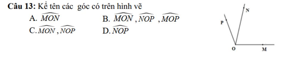 `@` Các góc có trong hình vẽ là: `hat(MON),hat(NOP),hat(MOP)`