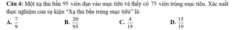 Xác suất thực nghiệm của sự kiện “Xạ thủ bắn trúng mục tiêu” là: