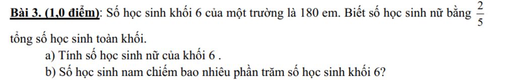 Học sinh nam chiếm số phần trăm số học sinh khối `6:`