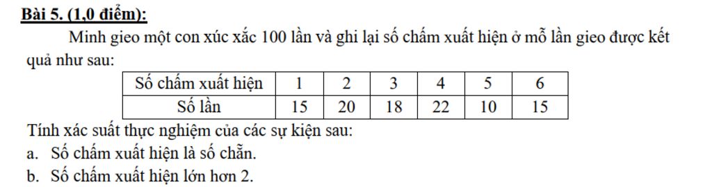 Tổng các số lần các số chấm xuất hiện là số chẵn: