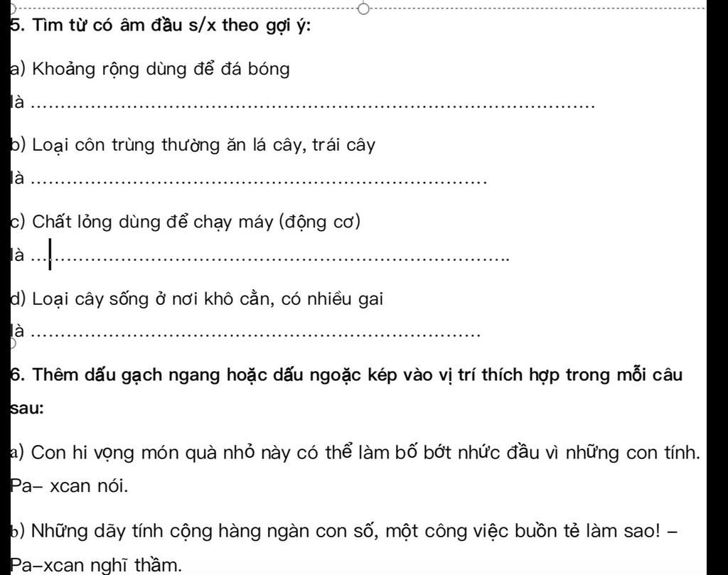 a) sân vận động b) sâu c) xăng d) xương rồng