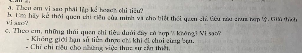 `a.` Theo em, phải lập kế hoạch chi tiêu vì: