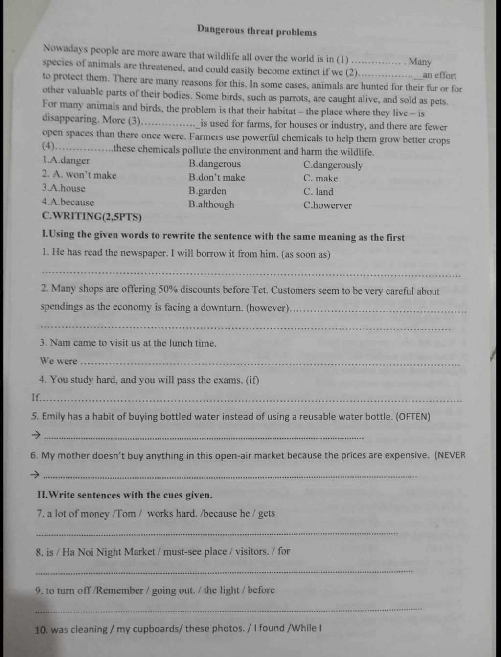 Nowadays people are more aware that wildlife all over the world is in (1) ................ Many