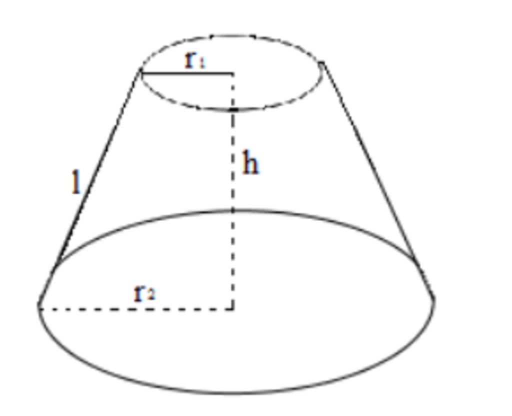 `S_(tp) = \pi (r_1 + r_2).l + \pi.r_1^2 + \pi.r_2^2`