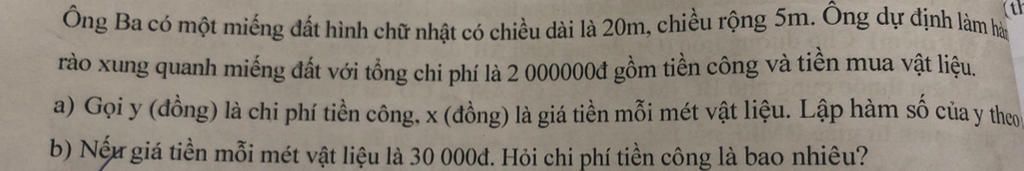 b) Giá tiền mỗi mét vật liệu là 30 000 đồng