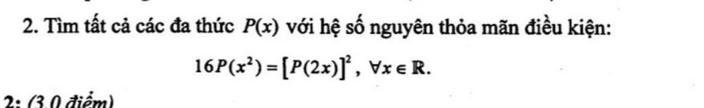 Vậy `P(x) = 0 ; P(x) = 16 ; P(x) = 4x \text{ hoặc } P(x) = x^2`