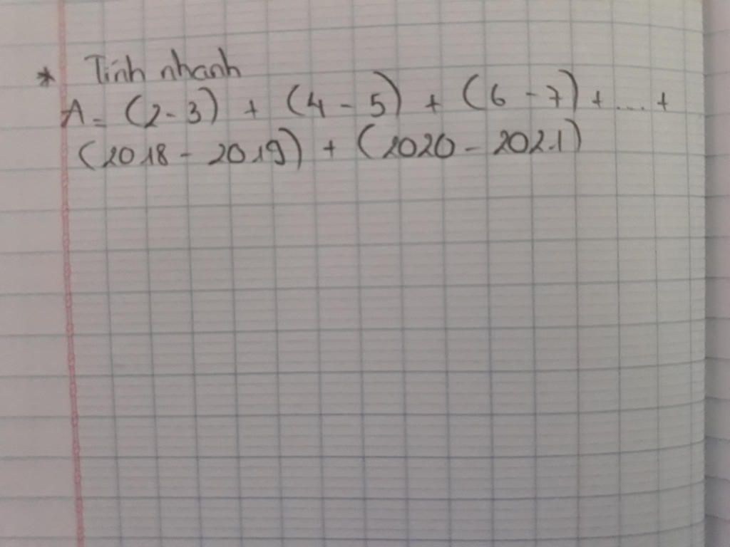 A=(2-3)+(4-5)+(6-7)+...+(2018-2019)+(2020-2011) A=-1+-1+-1+...+-1+-1 A=1010.(-1) A=-1010
