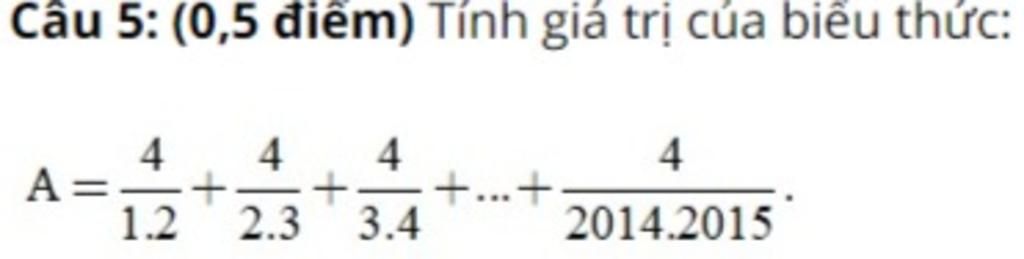 `A = 4 * (1/1.2 + 1/2.3 + 1/3.4 + ... + 1/2014.2015)`