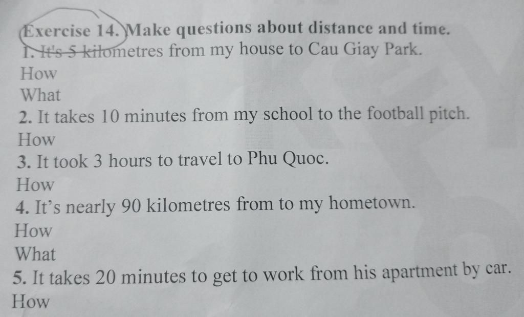 `1.` How far is it from your house to Cau Giay Park?
