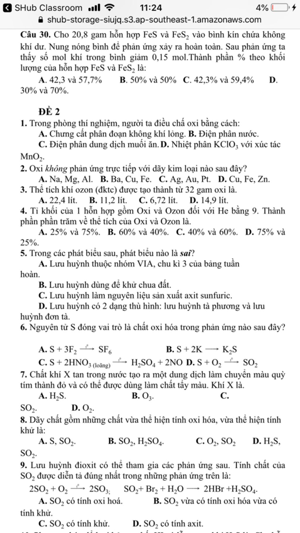 Câu 30. Cho 20,8 gam hỗn hợp FeS và FeS, vào bình kín chứa không
