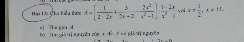 `A=(1/(2-2x) + 3/(2x+2) - (2x^2)/(x^2 -1)) : (1-2x)/(x^2 -1)`