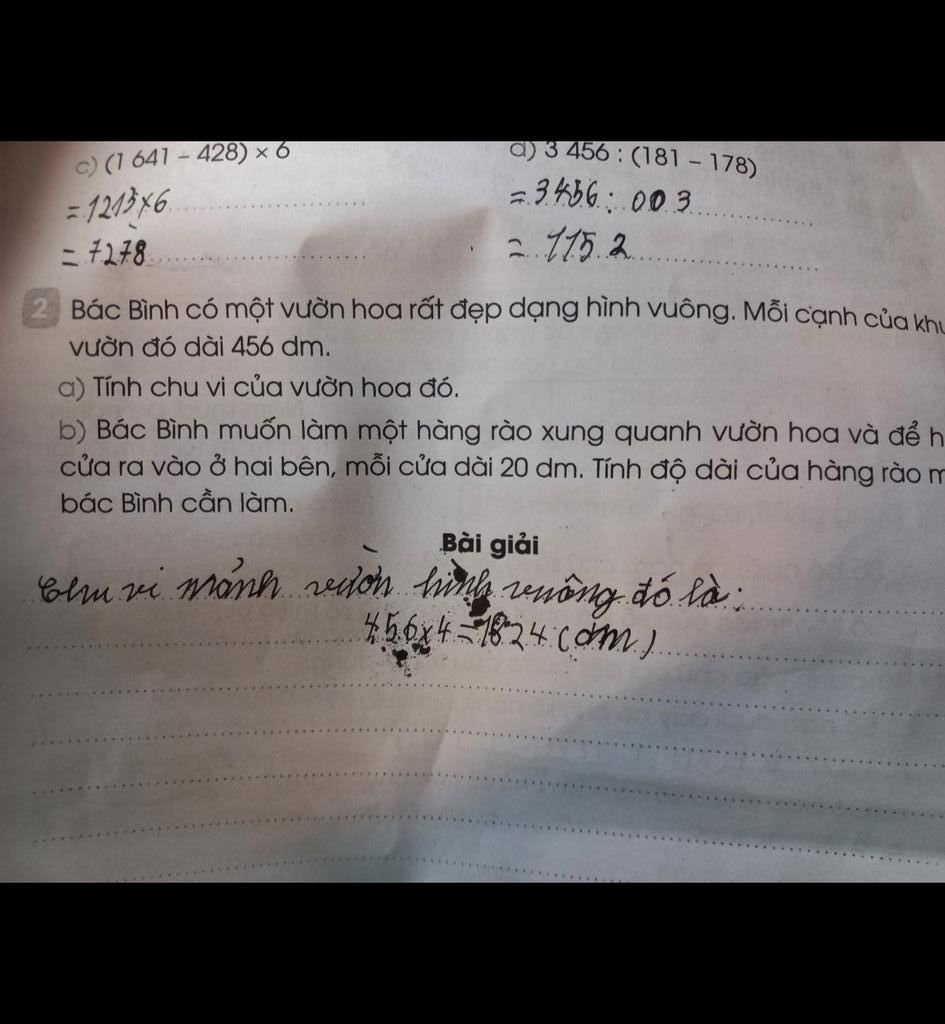 b) độ dài hàng rào mà bác Bình cần làm là: