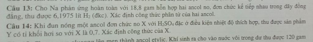13. ta có:$ n_{ancol}=2n_{H_2}=0,5(mol)$