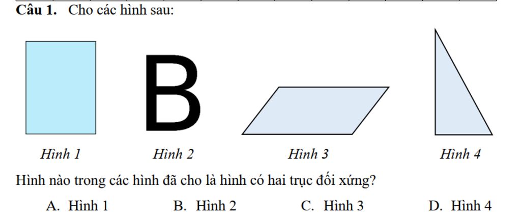 Hình nào trong các hình đã cho là hình có hai trục đối xứng?
