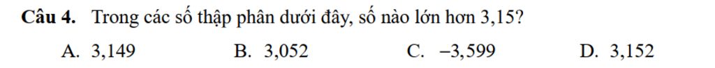 `C.` `-3,599<3,15` vì `-3,599` là số âm