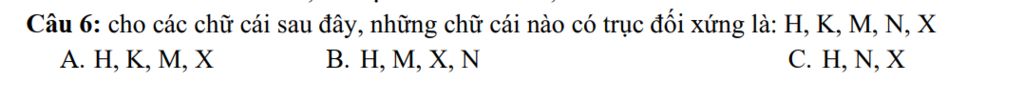 `@` Những chữ cái nào có trục đối xứng là: `H,K,M,X`