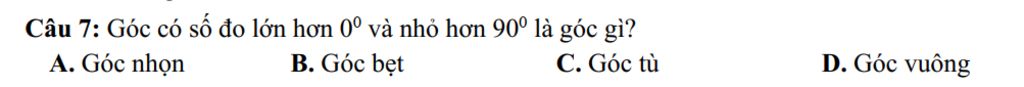 `0^0 < .... < 90^0 ->`đó là góc nhọn
