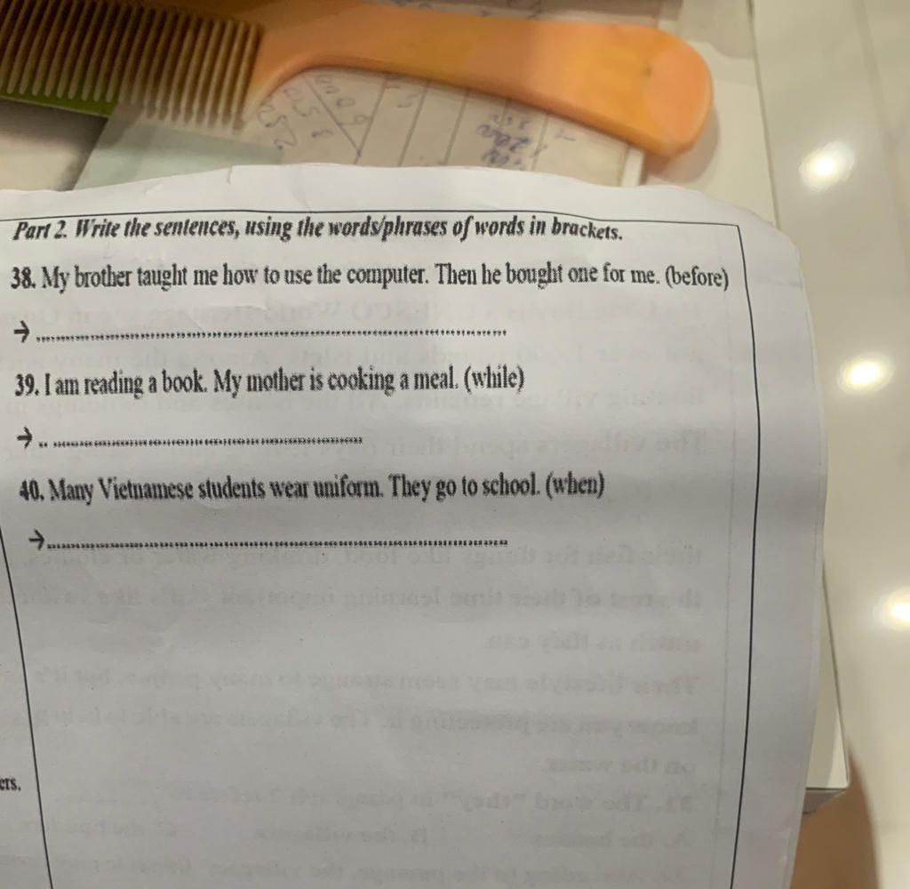 `38.` my brother taught me how to use the computer. Then he bought one for me (before)