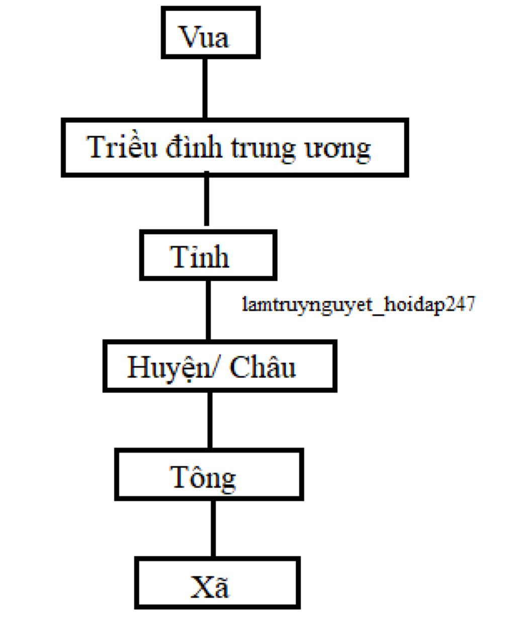 hoàng đế |triều đình trung ương | tỉnh | huyện/châu | tông | xã
