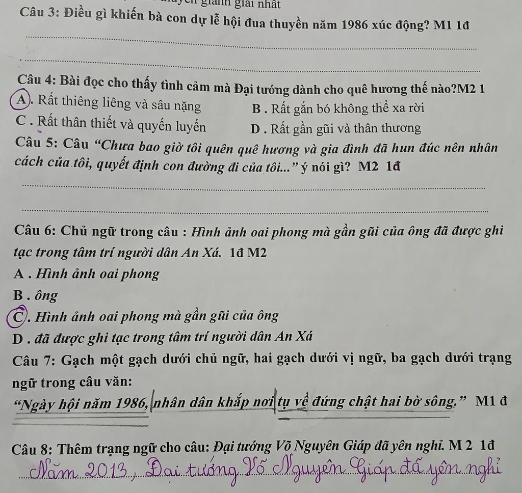 Đọc thầm văn bản sau : Quê hương nghĩa nặng ( của Đại Tướng Võ Nguyên Giáp )
