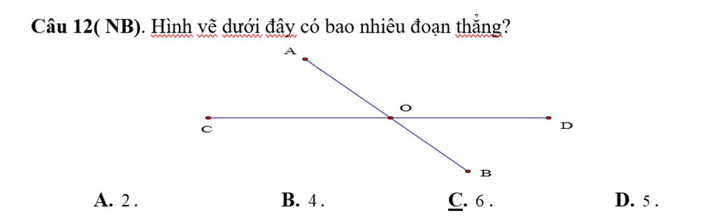 `@` Hình vẽ có `6` đoạn thẳng gồm: `AO,OB,OD,OC,AB,CD`