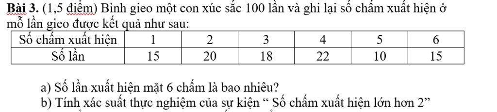 Số lần xuất hiện mặt `6` chấm là `15` lần