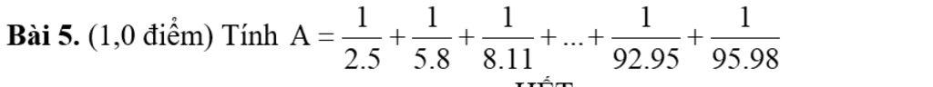 `=>A=1/3 .(1/2-1/5+1/5-1/8+1/8-1/11+...+1/92-1/95+1/95-1/98)`