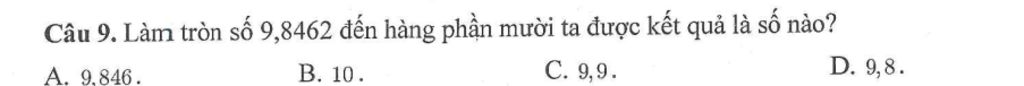 `=>` Ta làm tròn được số `9,8462 ≈ 9,8.`