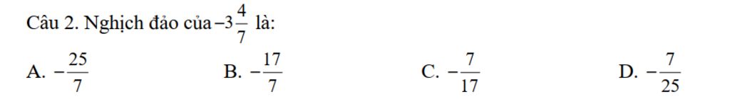 `=>` Nghịch đảo của `(-25)/7` là `7/-25=-7/25`