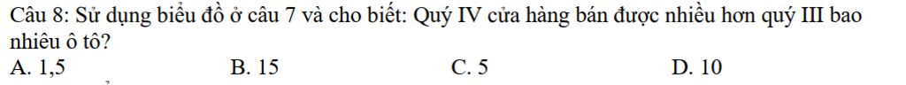 Quý IV cửa hàng bán được nhiều hơn quý III số ô tô là: