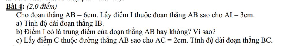 Điểm `I` nằm giữa `2` điểm `A` và `B`