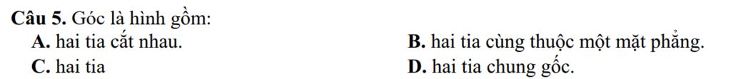 `2` tia trong `1` góc được gọi là hai tia chung gốc