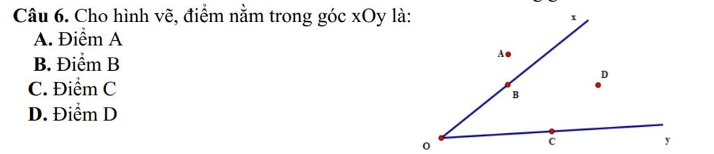 `-)` Điểm `D` nằm trong góc `\hat{xOy}`