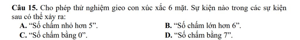 `=>` Sự kiện có thể xảy ra là “Số chấm nhỏ hơn `5`"
